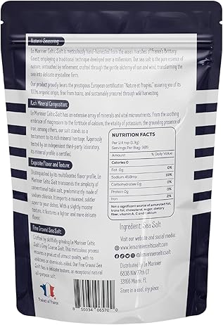 - AUTHENTIC FRENCH SEA SALT: Le Marinier French Sea Salt is hand harvested in the pristine French ocean marshes following a traditional method developed over a millennium ago. There are no additives or chemicals added, just pure French sea salt, as nature intended.